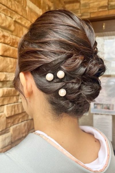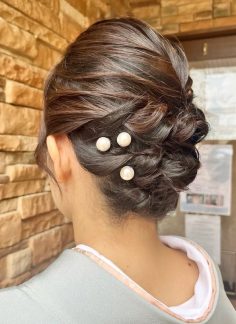 結婚式に列席されるお客様のセットお着付け させていただきました 髪の長さはボブ ぐらいですが可愛くまとまりました 藤原奈津子 #結婚式 #アップスタイル #美容 #石川県 #金沢美容室ENOMOTO #ENOMOTO