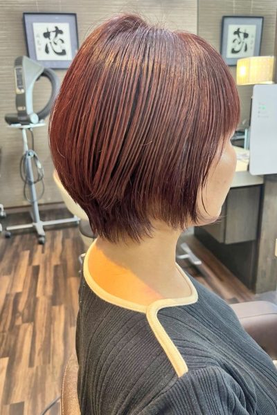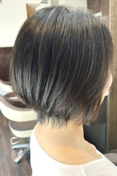 カットとヘッドスパをされました スタイリッシュな前下がりショート ボブスタイルになりました ヘッドスパも されて頭のコリも取れて軽くなりました 藤原奈津子