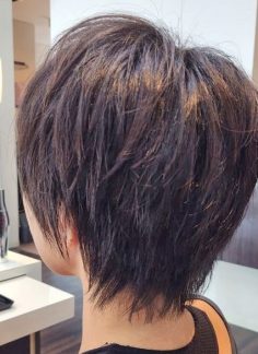 軽やかなショートヘアです ワックスでスタイリングするだけのお手入れ簡単ヘアです 大門恵美