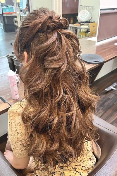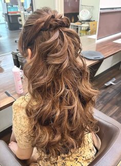 結婚式に出席されるお客様のヘアセット させていただきました エクステも付いて いたのでとてもボリュームアップになり ました 藤原奈津子 #ハーフアップ #金沢美容室ENOMOTO