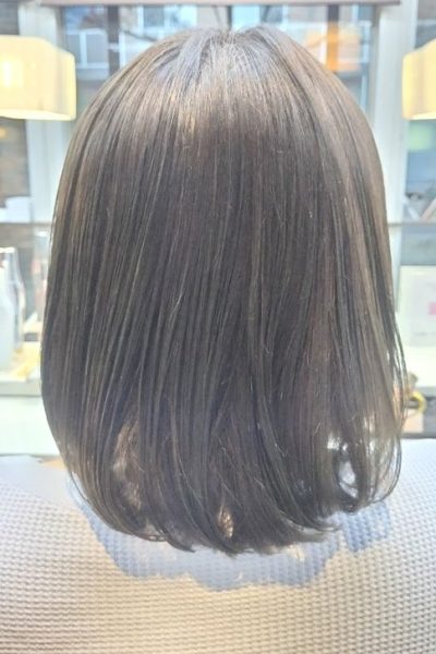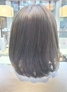 ロングからミィディアムボブへ アッシュカラーにイメチェンです アフタートリートメントはラメラメトリートメント 大門恵美