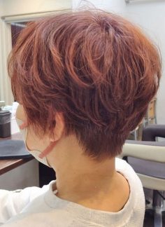 くせをいかしたショートボブ ピンクカラーがお似合いです サブリミック集中補修トリートメント 大門恵美