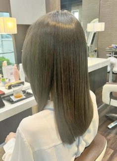 カラーとカットと資生堂サブリミック酸熱 トリートメントされました 秋らしく カーキーブラウンで艶々になりました 藤原奈津子